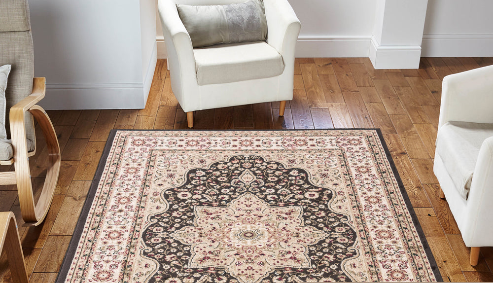 Add a touch of timeless elegance to your home with this traditional beige and brown area rug. Perfect for any room, this machine-woven rug features intricate patterns with a rich, luxurious feel. Made with high-quality heatset polypropylene, it offers durability and is non-shedding for easy maintenance. The 13mm pile height adds comfort while the detailed border design completes the sophisticated look.