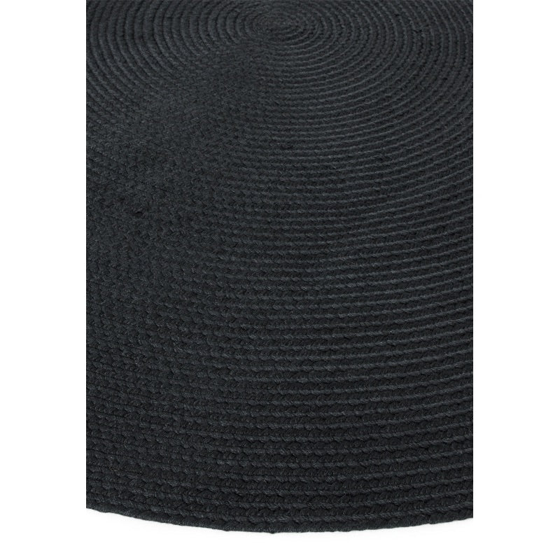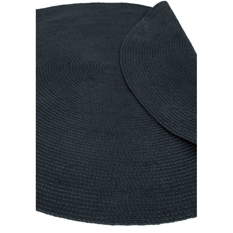 The modern Nico circular area rug is a beautifully simple piece of handwoven, waterproof polyester yarns manufactured in India. This adaptable braided design comes in two colour options and works well in both living rooms and gardens.