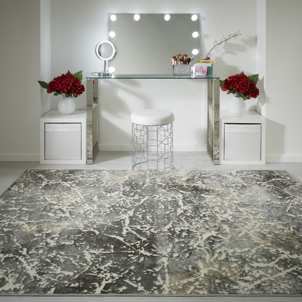 The grey Zoe 2060 L rug has an abstract design. A contemporary distressed pattern that harmonises beautifully with your interior design will provide your living room, dining room, and bedroom spaces focal points and warmth. The heavyweight polypropylene pile is extremely soft, tough, stain- and colorfast, non-shedding, and water-repellent. Every rug has been carved to highlight the pattern. There is also a coordinating hallway runner available.