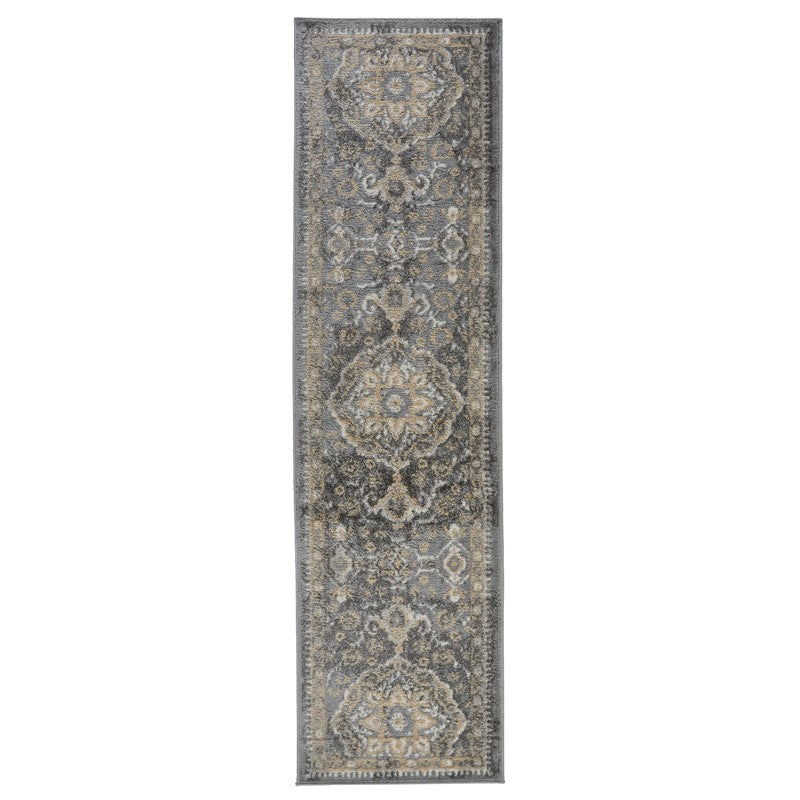 Traditional design in grey is featured on the Zoe 9 rug. In order to add warmth and focus points to your living room, dining room, and bedroom spaces, choose a distressed pattern that will blend seamlessly with your existing home decor. The heavyweight polypropylene pile is exceptionally soft, tough, stain- and colorfast, anti-shedding, and water-repellent. In order to highlight the design, each rug has been carved. Also included is a coordinating hallway runner.