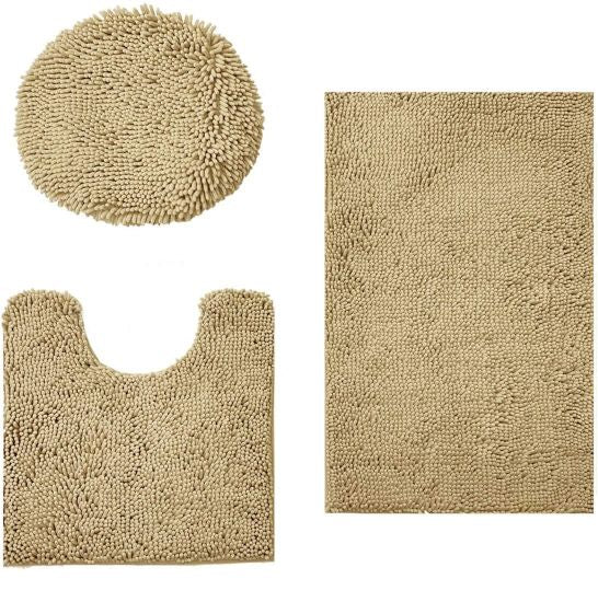3 Piece Beige Bath Mat Set