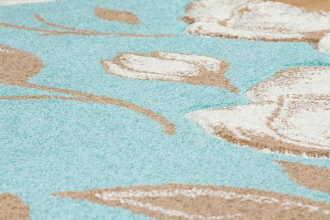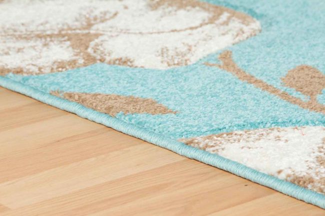 Viva 5996L Blue Floral Rug. Machine-woven in Egypt, this rug is made with 100% Polypropylene fibres. Highly Stain Resistant, Durable and Easy to Clean pile.