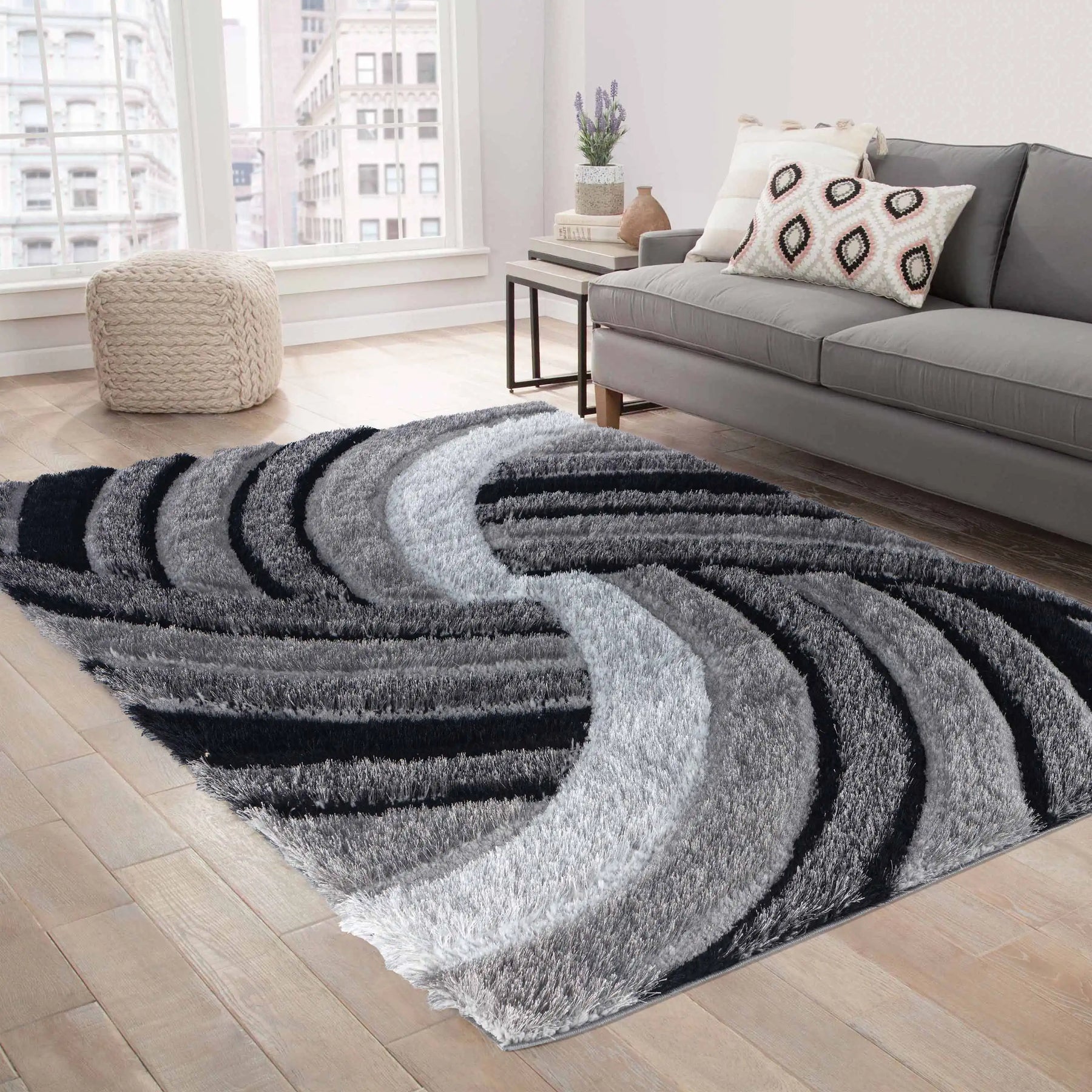 Among our most eye-catching shaggy rugs is the lovely California rug. It has a hint of shine and striking soft metallic hues. matched to its spectrum of colours perfectly with a selection of strong designs.