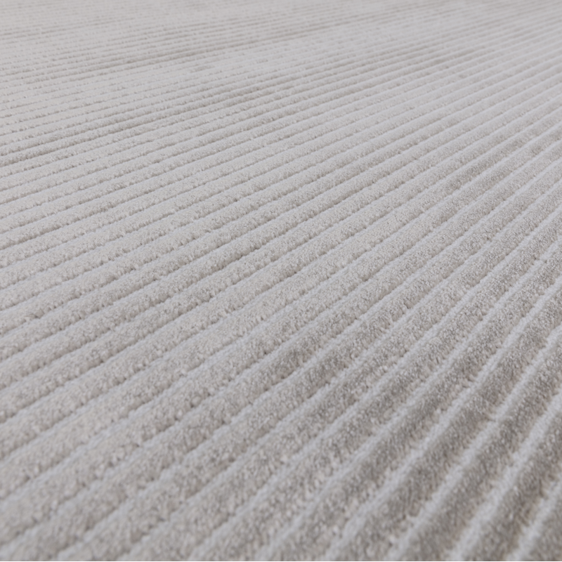 Use our Kuza collection to create a chic base. Kuza is velvety soft and comes in a variety of rich jewel-like tones and contemporary neutrals. Its pile is complex and multi-dimensional. This adaptable collection would work well in a variety of home settings because it offers the option of an all-over abstract, a muted border, a modern ikat, or a plain stripe design.