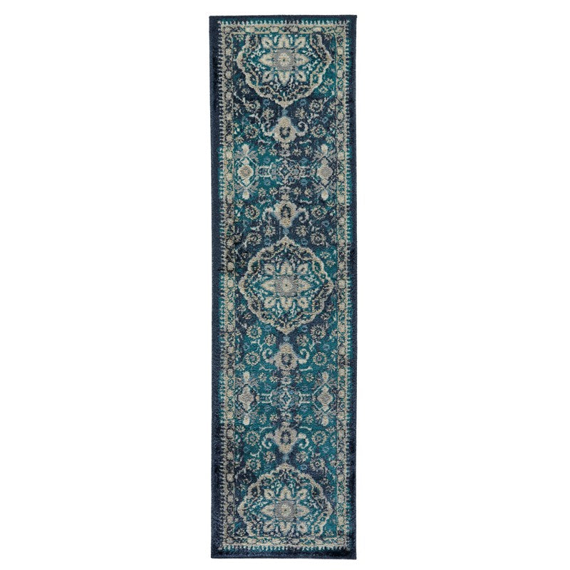 Traditional design in blue is featured on the Zoe 9 rug. In order to add warmth and focus points to your living room, dining room, and bedroom spaces, choose a distressed pattern that will blend seamlessly with your existing home decor. The heavyweight polypropylene pile is exceptionally soft, tough, stain- and colorfast, anti-shedding, and water-repellent. In order to highlight the design, each rug has been carved. Also included is a coordinating hallway runner.