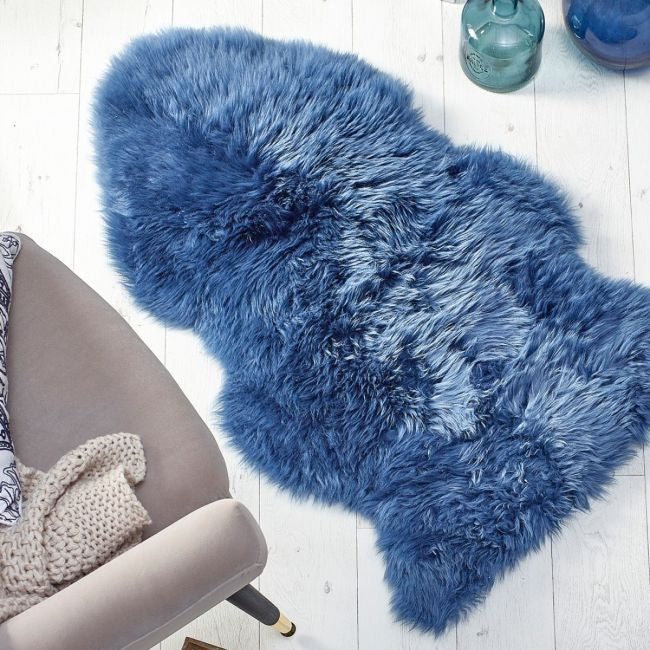 Our Genuine Sheepskin Adobe Navy Rug offers an uncomplicated aesthetic for a casual lifestyle with a blend of simplicity and elegance.