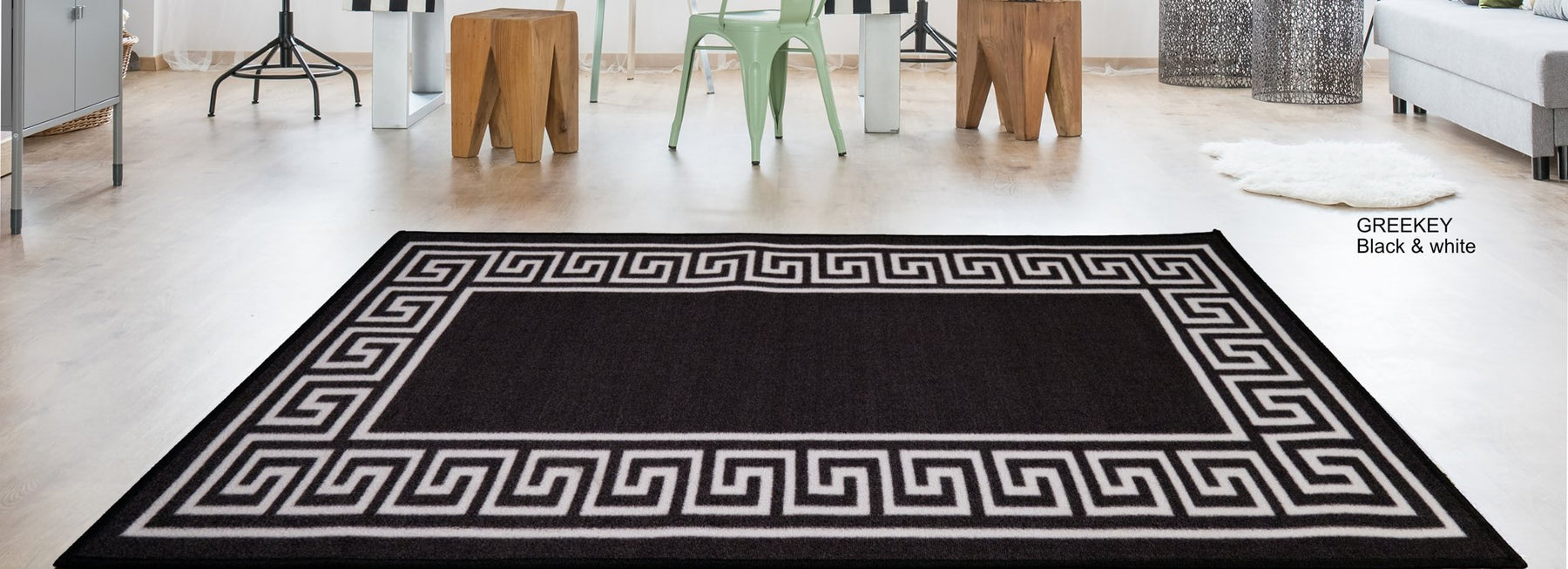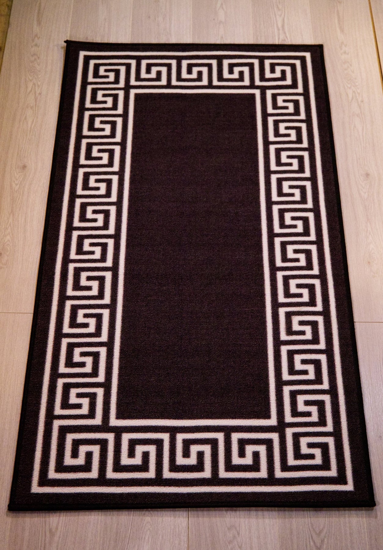 Greek Key Washable Indoor Mat – Black-White