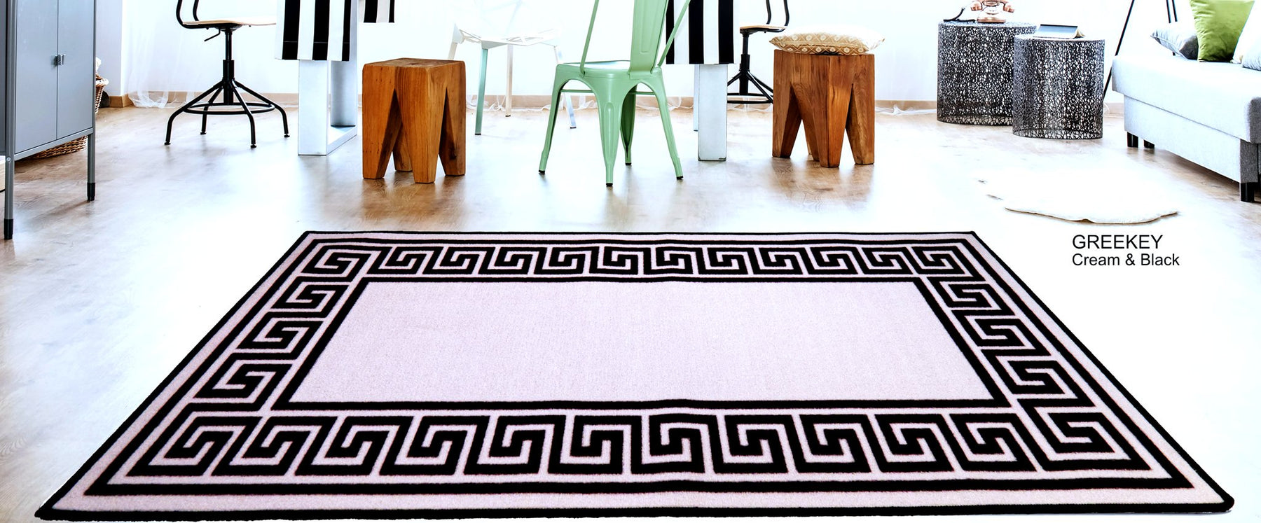 Greek Key Collection – Classic Washable Mats. Timeless Greek key border on an easy‑care, machine‑washable pile. Non‑slip and durable – ideal for kitchens and hallways.