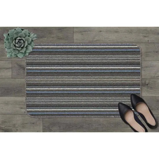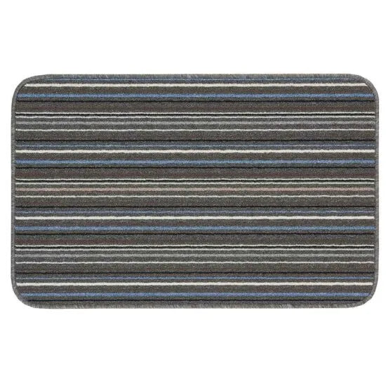 Striped Launderable Mat Lead/Light Blue
