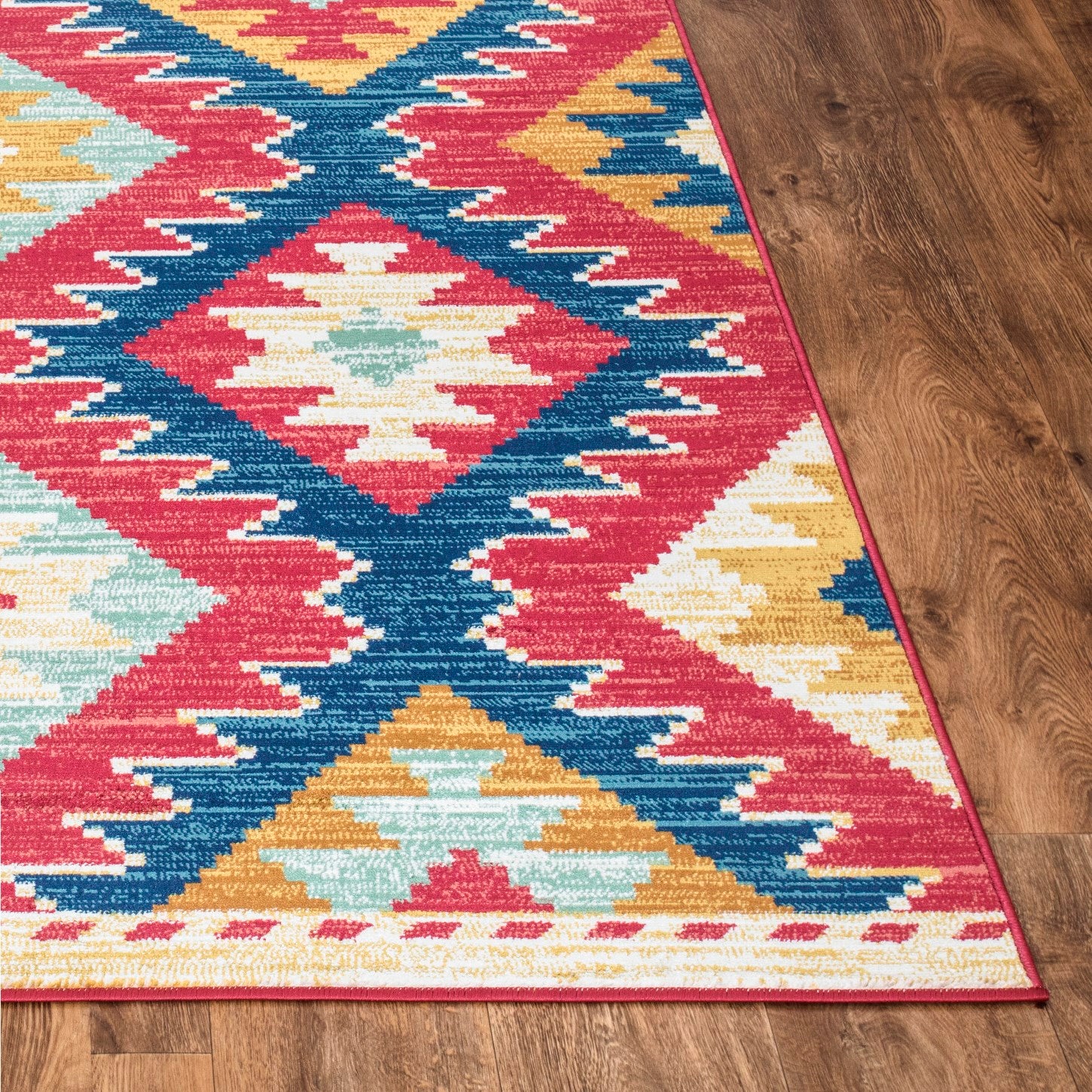 Kilim-Inspired Design – Traditional diamond patterns with a fresh colour update