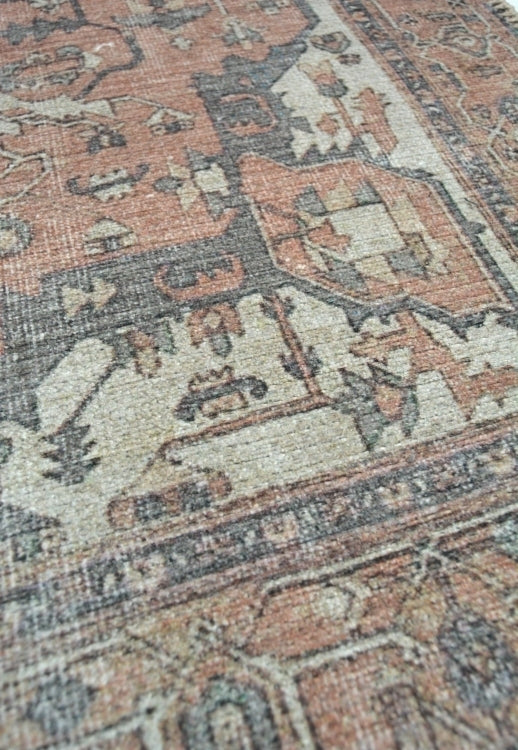 For a realistic feel, the finely created motifs on a chenille-look foundation are overlocked with a blanket stitch. After that, the elaborate prints are given a durable nano-coat treatment that provides a water-repellent protective layer to keep liquid stains off the rug.