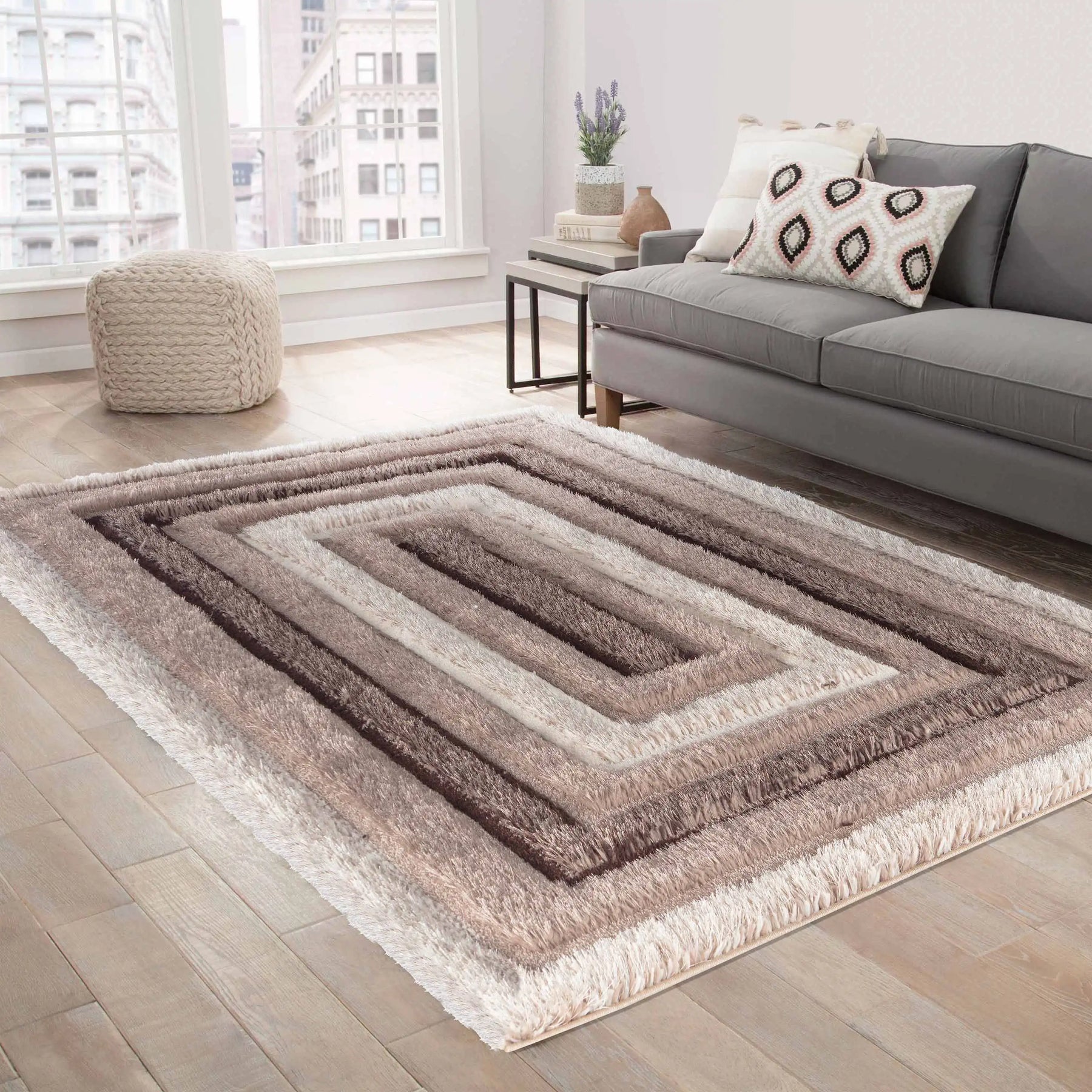 Among our most eye-catching shaggy rugs is the lovely California rug. It has a hint of shine and striking soft metallic hues. matched to its spectrum of colours perfectly with a selection of strong designs.
