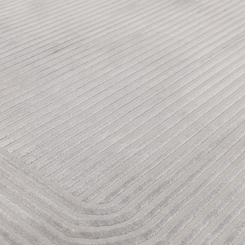 Use our Kuza collection to create a chic base. Kuza is velvety soft and comes in a variety of rich jewel-like tones and contemporary neutrals. Its pile is complex and multi-dimensional. This adaptable collection would work well in a variety of home settings because it offers the option of an all-over abstract, a muted border, a modern ikat, or a plain stripe design.