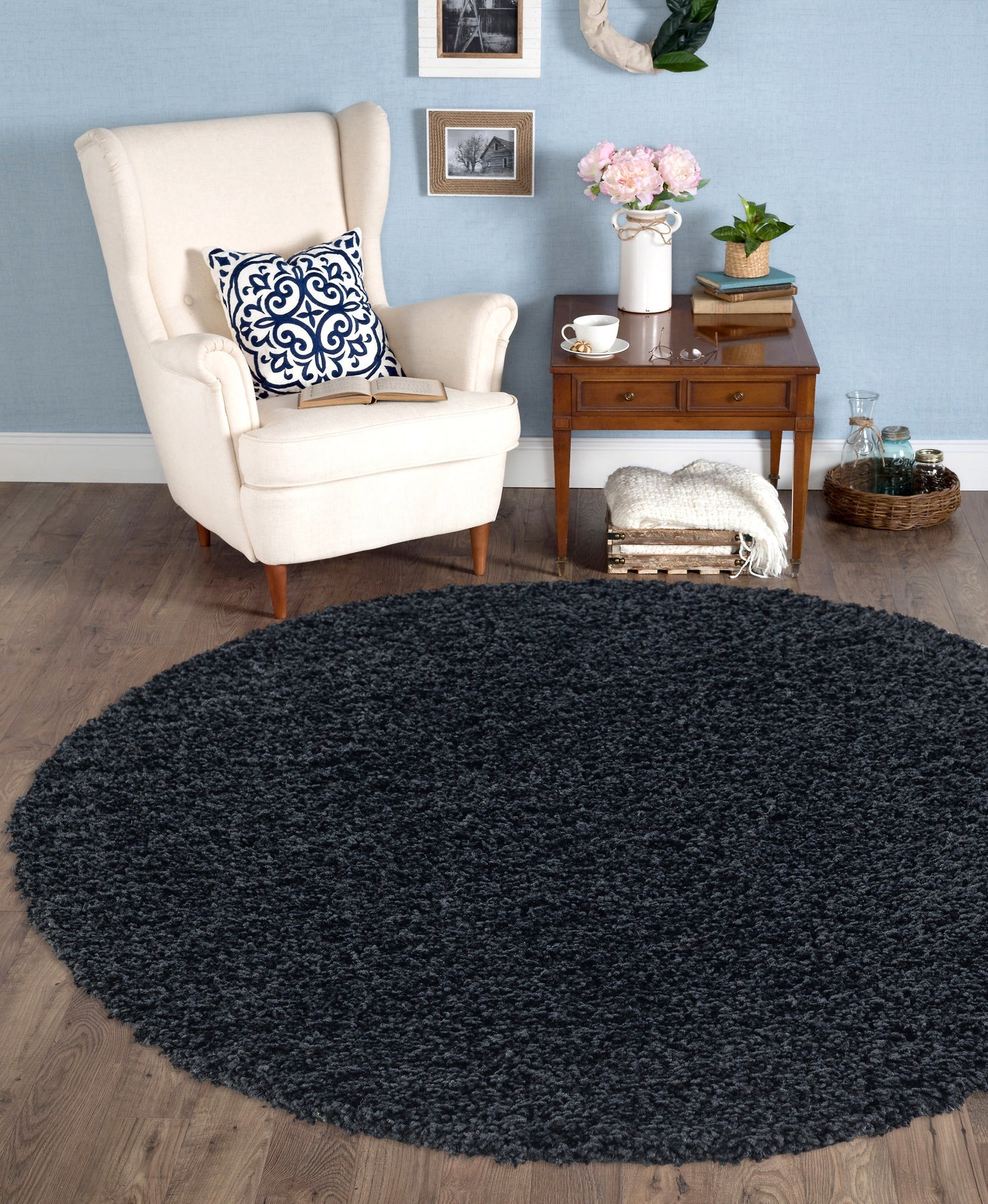 Veloria Round Black Rug