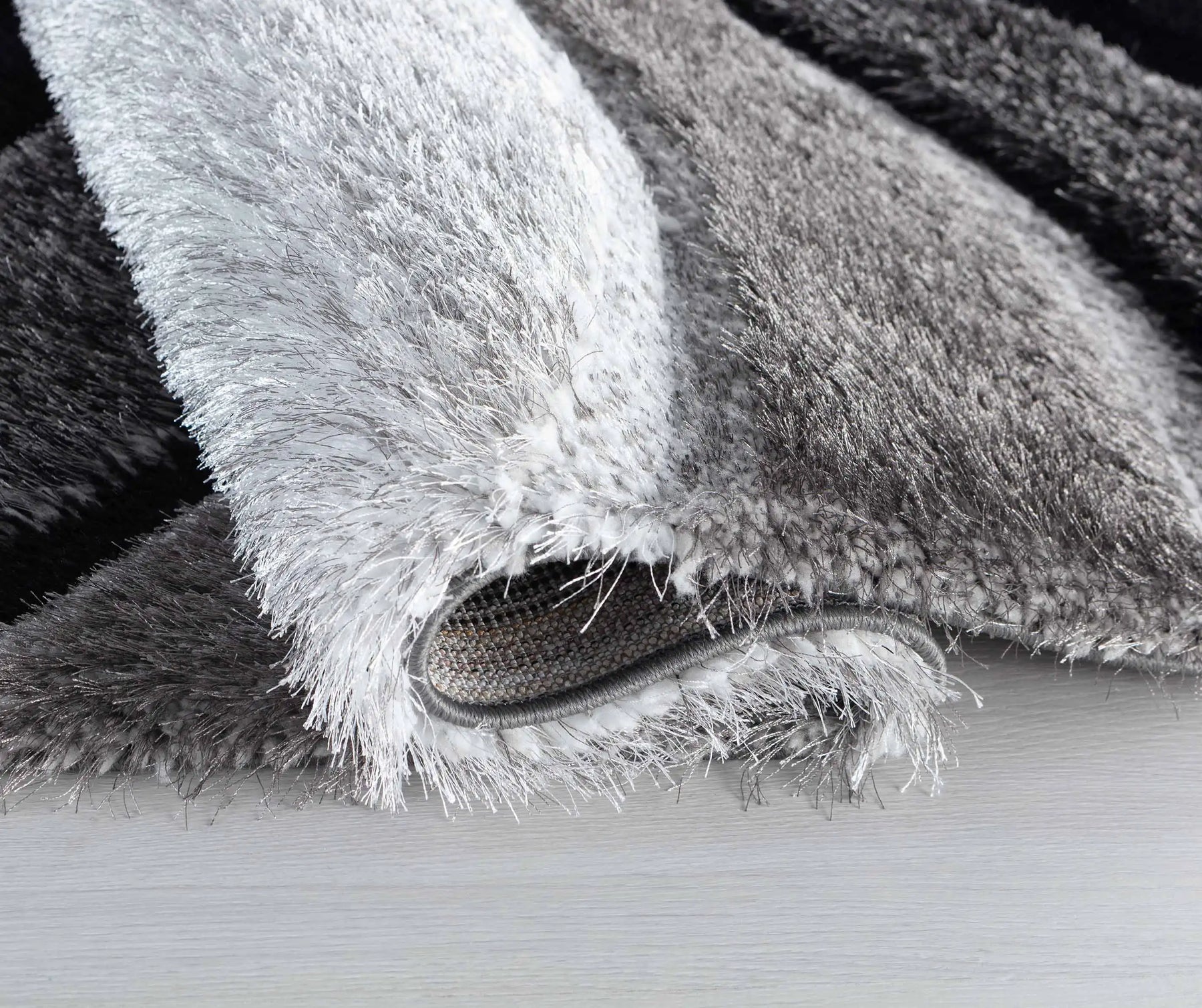 Among our most eye-catching shaggy rugs is the lovely California rug. It has a hint of shine and striking soft metallic hues. matched to its spectrum of colours perfectly with a selection of strong designs.