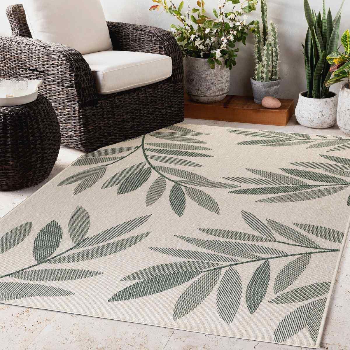 Duo Weave Indoor/Outdoor Rug Trailing Leaves Green