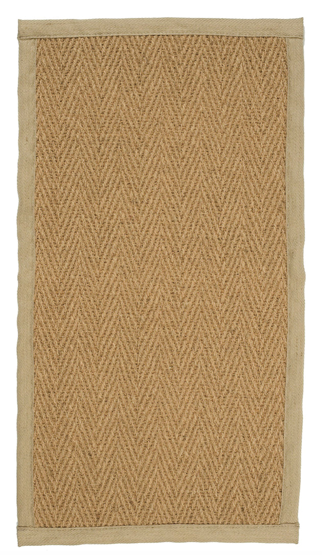 Herringbone weave eco friendly coir rugs and runners. Fitted with slip resistant latex backing with coloured borders