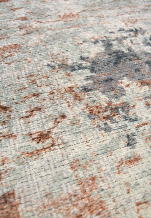 For a realistic feel, the finely created motifs on a chenille-look foundation are overlocked with a blanket stitch. After that, the elaborate prints are given a durable nano-coat treatment that provides a water-repellent protective layer to keep liquid stains off the rug.